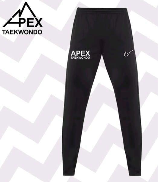 Train in comfort and style with our Apex Taekwondo slim-fit training pants. Designed with lightweight, breathable fabric, these pants provide maximum flexibility for kicking, stretching, and sparring. Featuring the official Apex Taekwondo logo and Nike swoosh, they’re perfect for both practice and casual wear.
